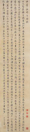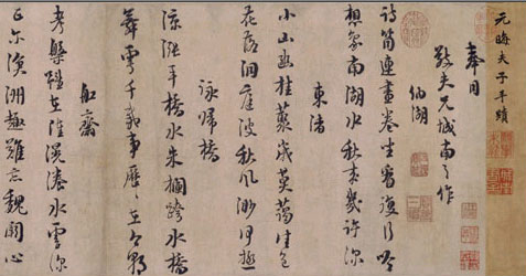 丰坊,鄞县(今浙江宁波)人。生卒年不详。明代书家。亦名道生,字存礼,又字人翁。号南禺外史,嘉靖二年(1523)进士,出为南京吏部考功主事。书学渊博。所作书,善用枯笔,腕力强劲,但风韵稍乏,时詹景风评其书:“五体并能,诸家自魏晋以及国朝,靡不兼通,规矩尽从手出。盖工于执笔者也。故其书大有腕力,特神韵稍不足。”尤擅草书,亦工篆刻,善画山水。晚痺而跌,株连臂,于书不无少妨。著有《书诀》、《古书世学》、《春秋世学》、《诗说》等。传世书迹较多,有《唐人诗屏》、《谦斋记卷》、《秣陵七歌册》、《唐诗长卷》等。《谦斋记》,丰坊书于嘉靖二十七年(1548)。纸本墨迹。行书。竖28.2厘米。日本京都妙智院藏。从此作品中可看出,无论是笔意,还是结字,皆出自黄庭坚,但取法自然,神韵淳厚。细察此作品时,不难发现除习学黄庭坚外,还有自家特色,体现了作者在学黄时只取其意,而不是亦步亦趋的追摹。他笔下的线条厚重,但不呆滞。运笔以慢、稳、重相结合,收锋峻爽,利落大方,从而加强了作品明快的节奏感。丰坊极注重作品的行气,此作品行与行之间互相照应,行间距离十分和谐,留有适当的空间,利于点画舒展,给人以开阔的美感。