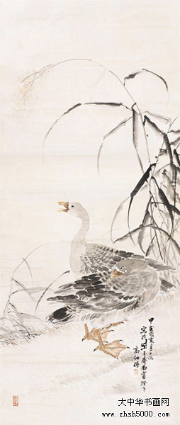 高剑僧,又名剑争,乃高氏昆仲最幼者,与兄剑父、奇峰合称"岭南三高"。自幼得剑父扶持,并亲授画艺。1912年,未足十八之龄即随兄赴沪,创办审美书馆,发行《真相画报》。后留学日本进修工艺美术,岂于归国前染疾,年仅廿三病逝客乡!剑僧早慧,得剑父悉心裁培,十余岁已显示在绘画艺术上的天份。惟天不假年,故传世作品极稀。本幅写于1914年沪江剑庐,即与兄长同处上海之时。据一般资料所载剑僧于1913年赴东瀛留学,本幅题款的时与地,与上述有出入,或可据画迹实证来考订其生平行迹。就传世仅有画迹所见,剑僧在实践其兄倡导的"新国画"上,技法掌握运用已甚成熟,对照不同时期之作,见受剑父影响极深,这与剑父亲授有莫大关系,亦反映其天资聪慧。